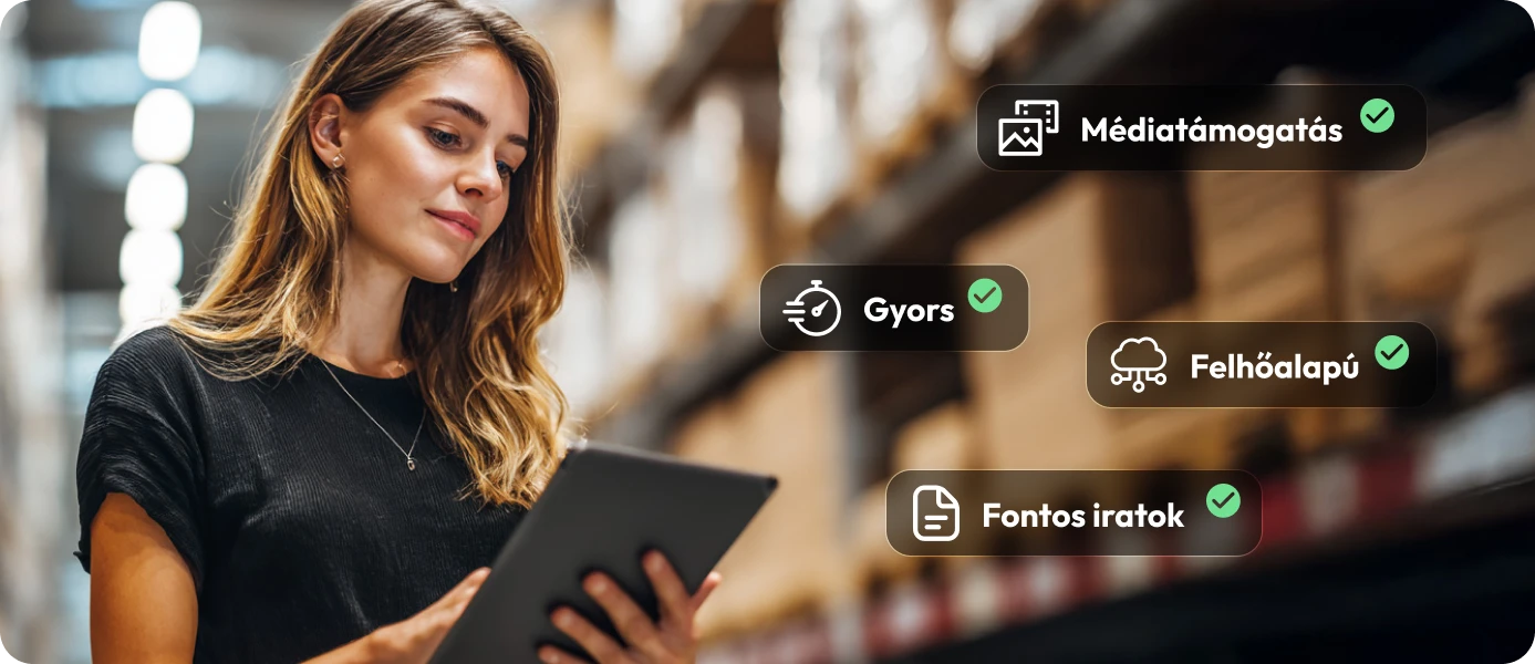 A dokumentumok és fájlok biztonságos, felhőalapú tárolása garantálja az adatok könnyű elérését és védelmét bárhonnan.