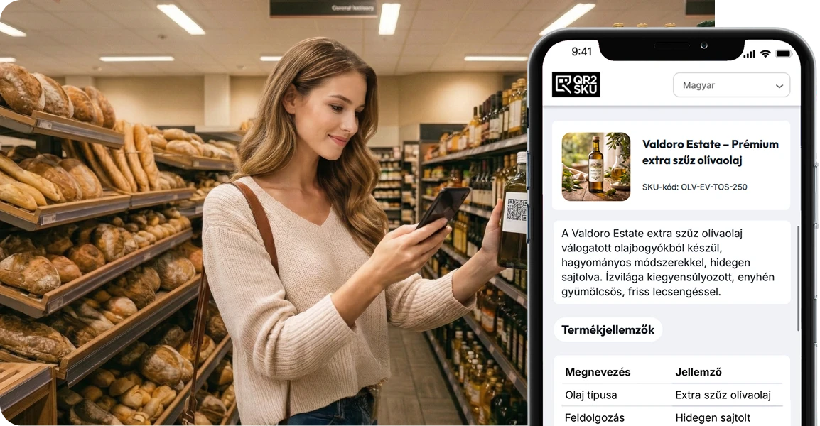 A többnyelvű címkék drágák — egy QR-kód automatikusan a megfelelő nyelven mutatja az adatokat.
